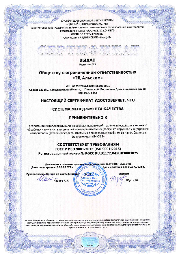 Свои подписи под документом поставили генеральный директор ТМК Игорь Корытько и директор компании «Альском» Сергей Рыбников. Согласно документу, «Альском» будет на конкурсной основе поставлять порошковую проволоку с наполнителями феррованадий и ферромолибден. За партнером также закрепляется статус дилера по реализации трубной продукции ТМК.